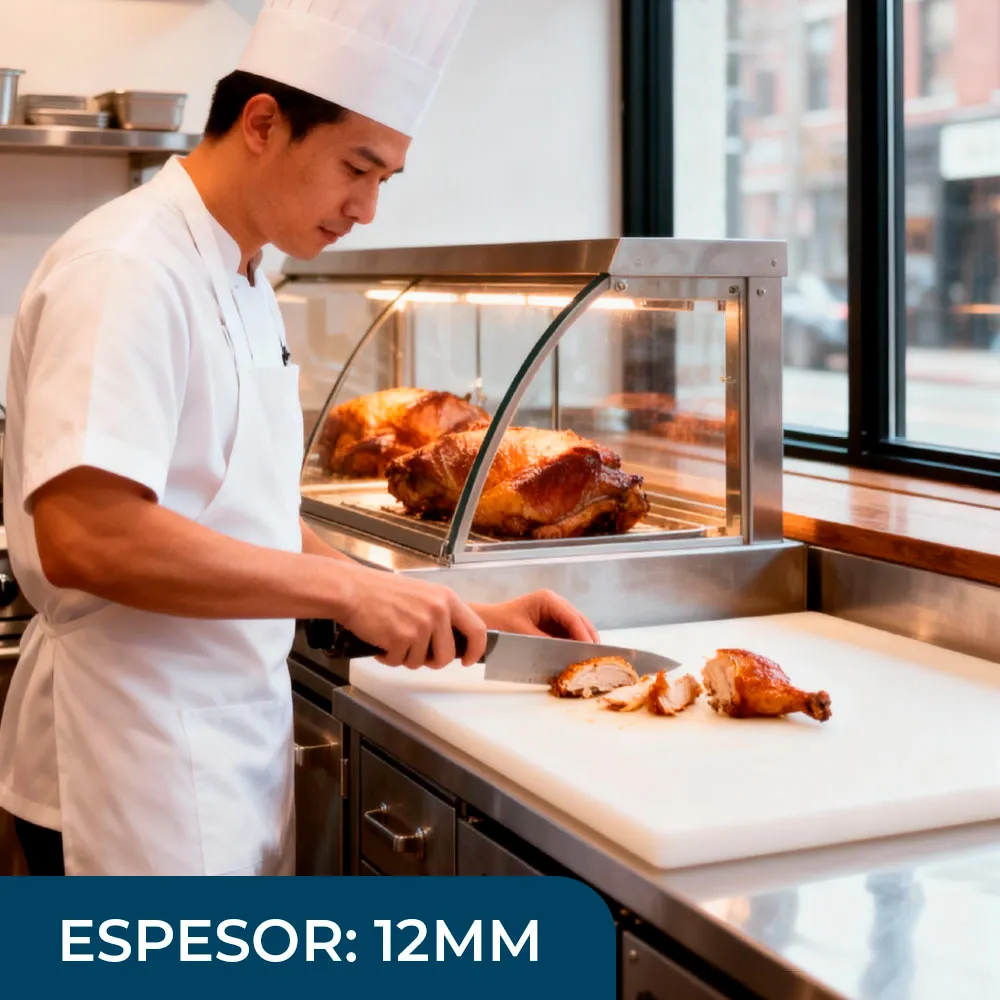 La tabla de polietileno de alta densidad HDPE cuenta con un lado texturizado el cual tiene como finalidad funcionar como antideslizante además evita el deterioro por el uso de cuchillos, asegurando una larga vida útil.