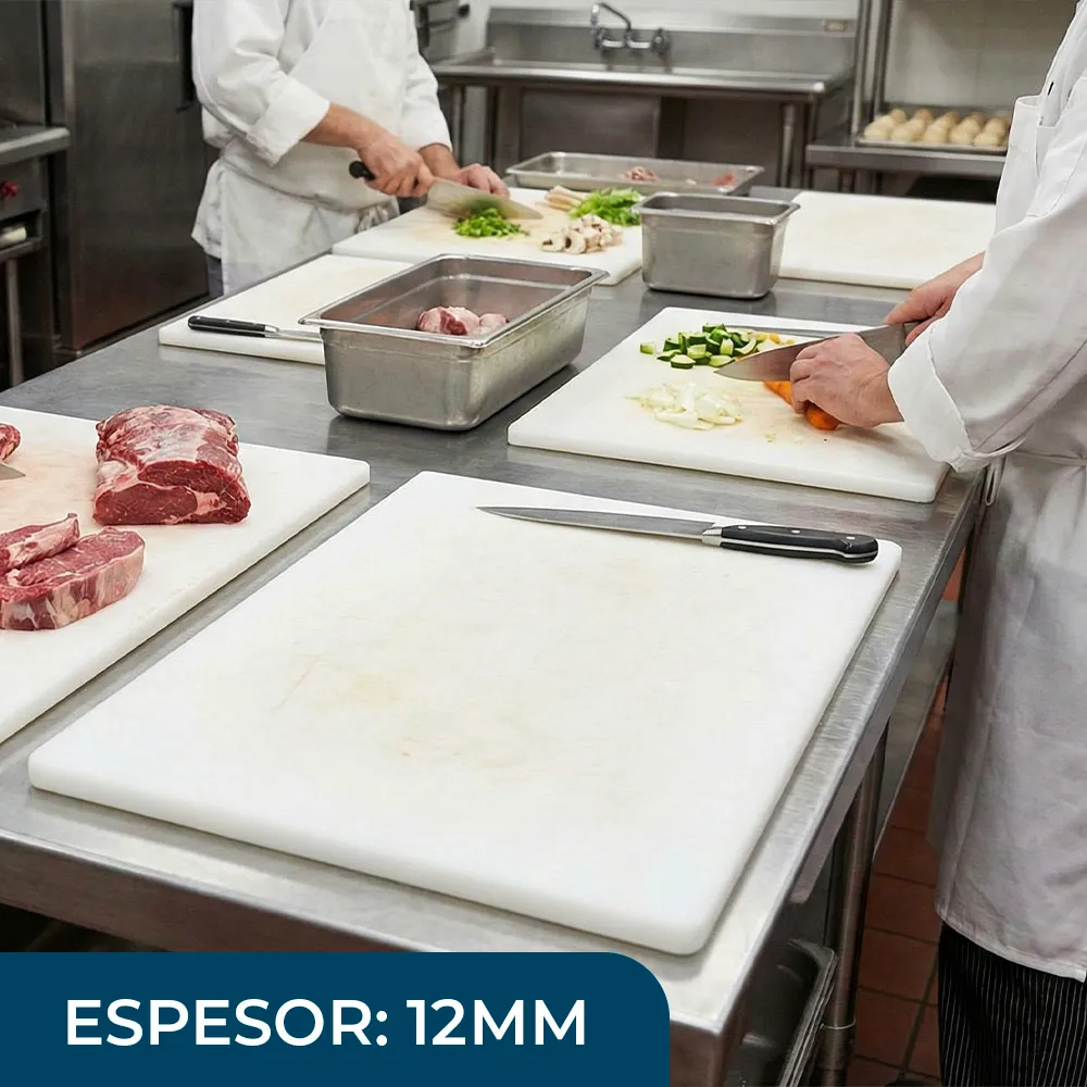 Tabla elaborada de polietileno de alta densidad HDPE ideal para crear tablas para cortar alimentos sin que estos lleguen a tocar la superficie de trabajo, para que este no se contamine y realizar un trabajo más limpio.